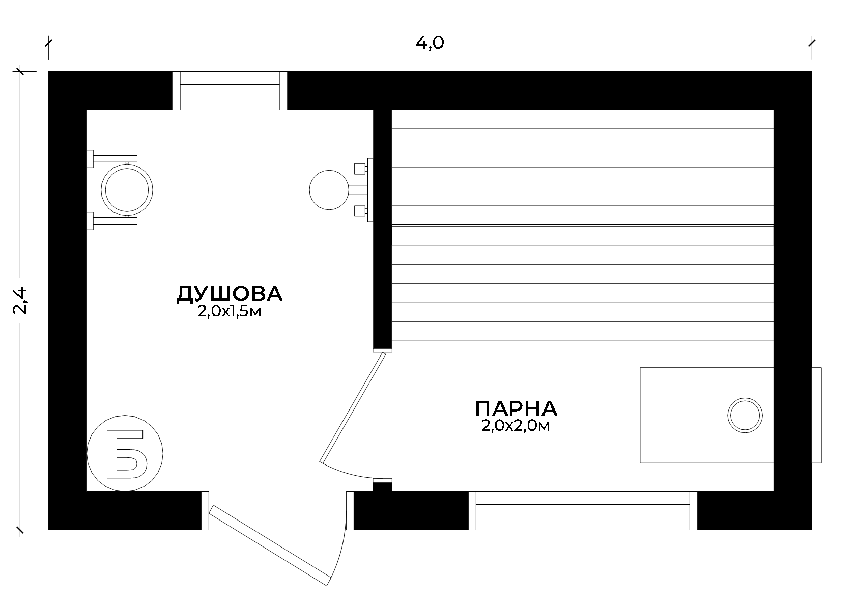 Міні баня 2,4х4м з душовою – 9,6 м²