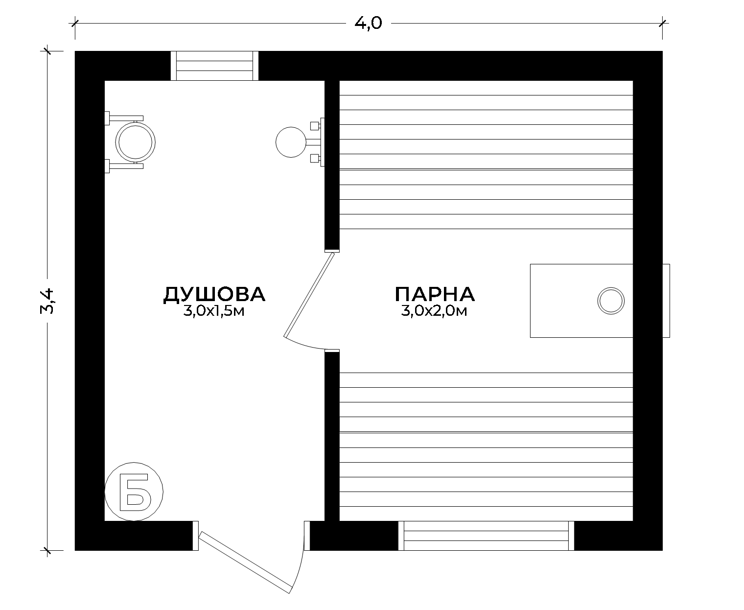 Міні баня 3,4х4м для дачі – 13,6 м²