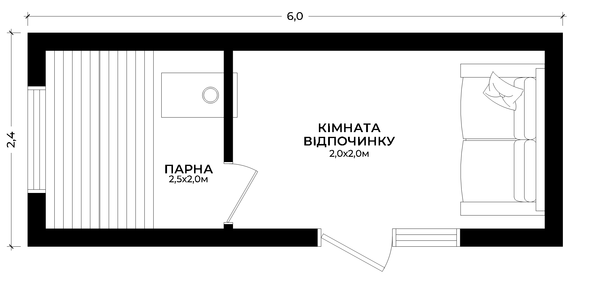 Міні баня 2,4х5 з кімнатою відпочинку – 12 м²